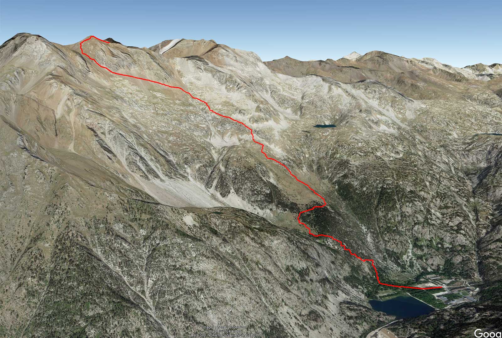 Itinéraire aller  distance : 5km ; dénivelé: +1450m ; durée: 3h30