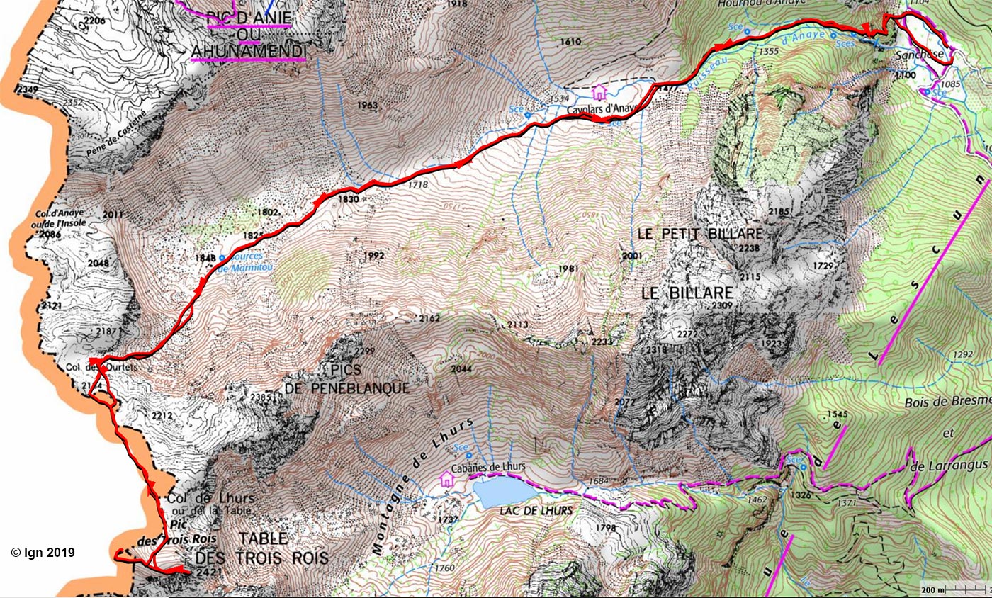 Bonjour, J'ai essayé cette magnifique randonnée en début de semaine et la vue était à couper le souffle ! La vue du col d'Anaye en tout cas car pour aller à la table des trois rois c'est plus compliqué. Il faut sortir du sentier balisé et il y a des roches abruptes tout autour. Où aller ? J'ai escaladé et cherché un passage, mais après 3h30 d'ascension, j'ai préféré en rester là pour cette fois. Cela me fera une occasion de revenir, mais je tenais à dire que ce n'était pas évident de s'y retrouver ! 3h30 aller, 3h30 retour, en prenant le temps. Départ à 10h et retour à 18h Attention également au GPS qui m'a emmené à 20mn de marche du parking du Plateau de Sanchèze sur un autre parking, en provenance de Lescun. L'itinéraire par la D340 permet par contre d'y accéder. Bonne randonnée à tous