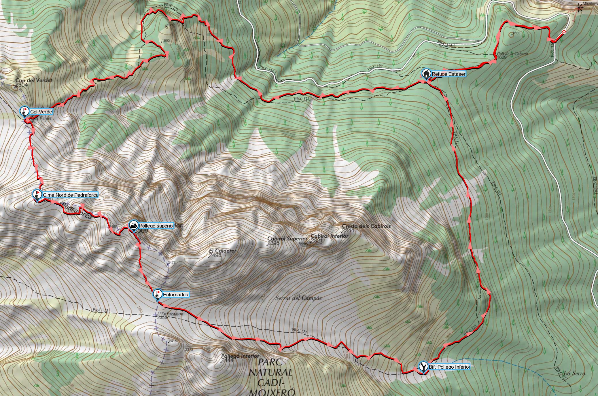 La silhouette si particulière de la Pedraforca a de quoi impressionner lorsqu'on la découvre de loin. Réservé aux randonneurs expérimentés ne craignant pas de poser les mains l'itinéraire par le col verdet demeure raisonnablement accessible, bien plus en tout cas que ne pourrait le laisser présager la verticalité de ses falaises.